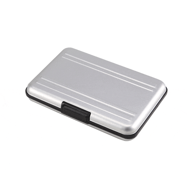 This silver SD card protector case is perfect for any grab bag or laptop case as it’s slim design lets it fit into any bag pocket.